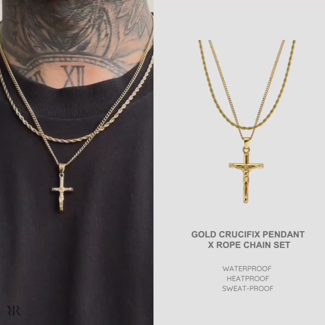 GOLD CRUCIFIX PENDANT X ROPE CHAIN SET